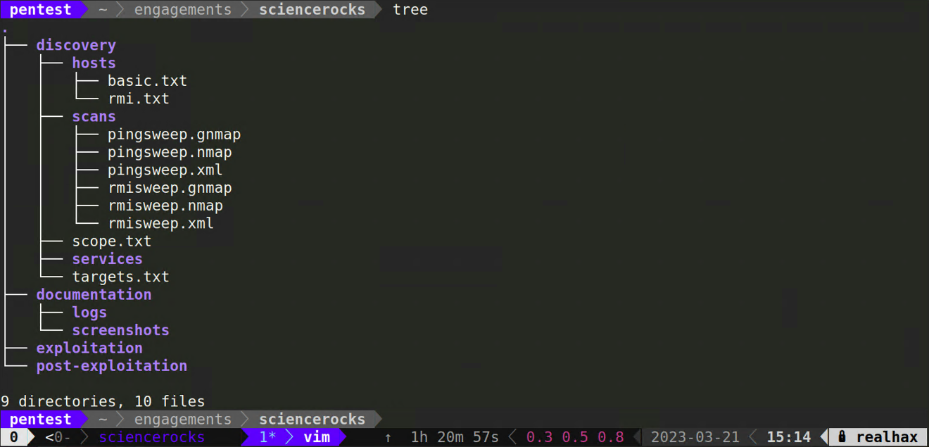 Your first objective is to identify live assets or “hosts”. CD into your engagements/sciencerocks/discovery directory.