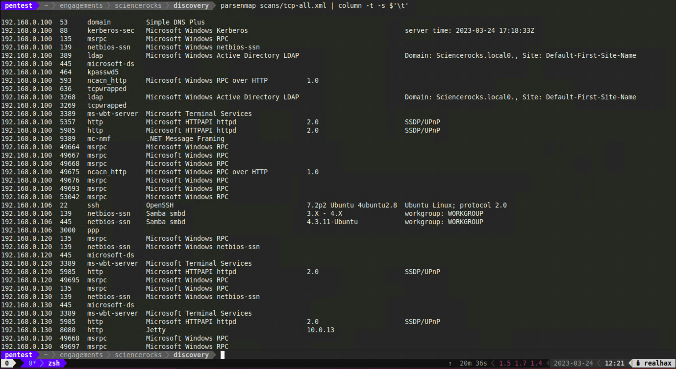 parsenmap scans/tcp-all.xml | grep 445 | cut -f1 | sort -u > hosts/windows.txt
